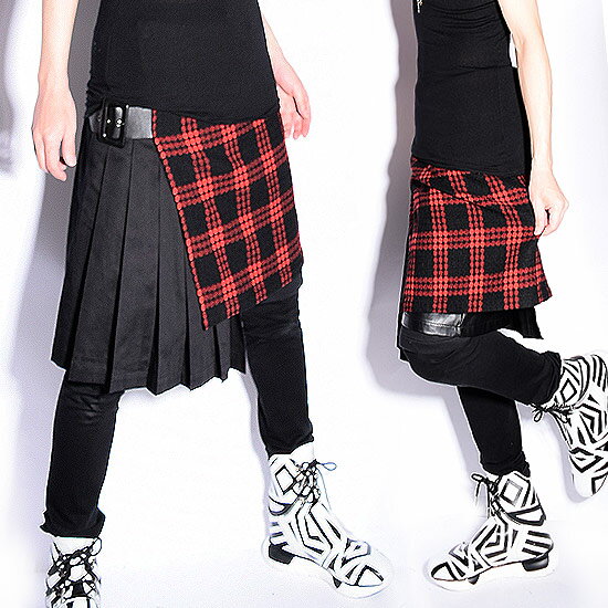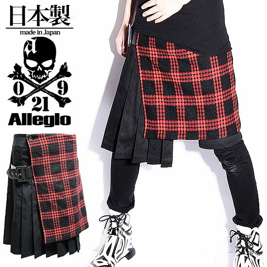 スカート メンズ ブラック チェック チェック柄 レッド 黒 赤 巻きスカート スカート Alleglo アレグロ オリジナル ブランド 個性的 V系 ビジュアル系 お兄系 サロン系 B系 ホスト モード系ファッション スリート系ファッション 2016 春 夏 新作 衣装