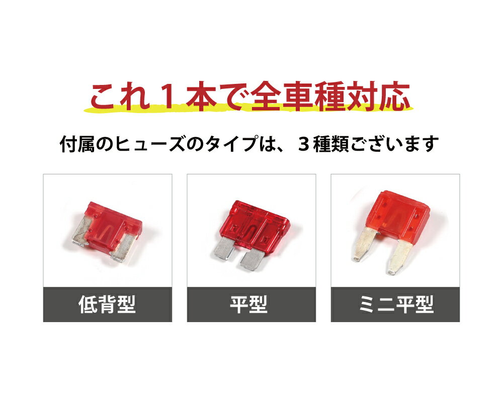 【商品紹介】 商品名:ドライブレコーダー SAMONJI対応直接配線用電源ユニット 出力端子:microUSB 出力:5V-1.5A 入力端子:低背型、平形、ミニ平形 入力:12V-24V 対応車両:12V車両、24V車両 対応ドライブレコーダー:入力端子がmicroUSBの機種 コードの長さ:3.5m バッテリー上がり防止:12V車は11.5V以下で電源供給停止、24V車は23.5V以下で電源供給停止 1.ヒューズボックス内のヒューズを取り外します。