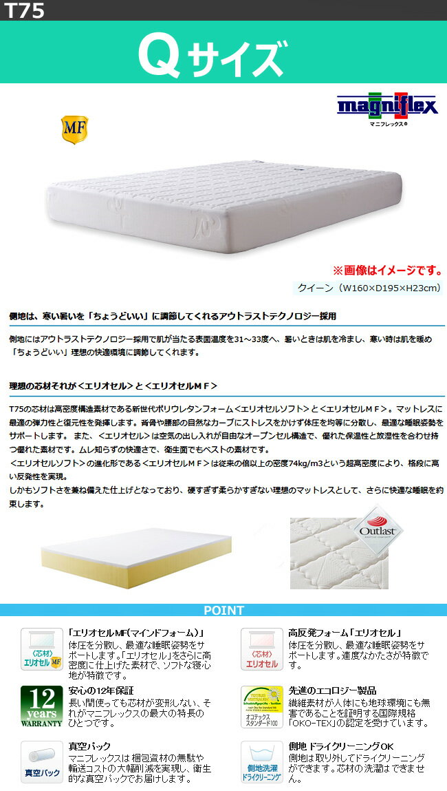 ・・・・・・・・・・・・・・・・・・・・・・・・・・・・・・・・・・・・・・・・・・・・・・・・・・・・・・・・ 人気マニフレックスの【T75/Qサイズ】となります。